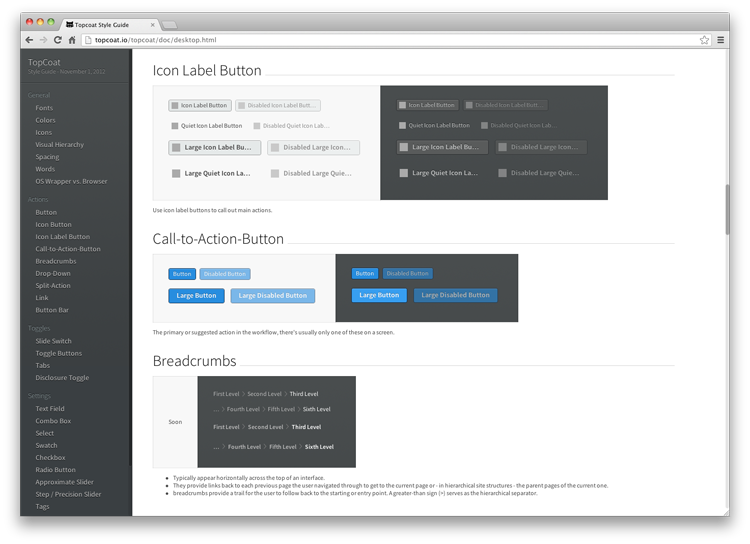 Topcoat 是一個(gè) CSS 集合,用于簡(jiǎn)潔和快速的 Web 應(yīng)用程序開發(fā)。它是一個(gè)開源庫(kù),不需要任何 JavaScript 內(nèi)置的用戶界面元素。更多信息: http://topcoat.io/