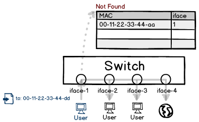 之前說了集線器和交換機的轉(zhuǎn)發(fā)區(qū)別。如果交換機發(fā)現(xiàn)一個暫時還未學習到的 MAC 地址,將會把數(shù)據(jù)包送往何處呢?為了不丟包,只能是廣播到所有接口。