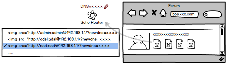 CSRF 漏洞讓病毒木馬都用不著了。用戶直接訪問一個網(wǎng)頁,甚至是一帖子,瀏覽器自動向路由器發(fā)起修改配置的請求。