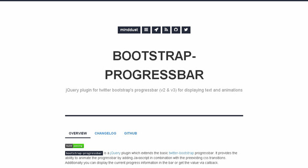 Bootstrap Progressbar 是一個(gè)擴(kuò)展了基本的Twitter的引導(dǎo)進(jìn)度條的jQuery插件。它提供了已經(jīng)存在的CSS過渡混合JavaScript動(dòng)畫進(jìn)度條的能力。 此外,您可以在進(jìn)度條上顯示當(dāng)前進(jìn)度信息,或者通過回調(diào)函數(shù)獲取值。