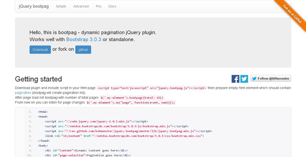 bootpag是一個(gè)動(dòng)態(tài)分頁jQuery插件。與Twitter Boostrap或任何其他的html頁面都好使。
