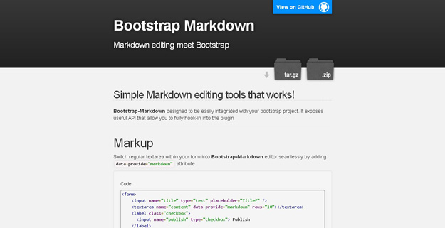 Simple Markdown作為編輯工具運(yùn)行。Bootstrap-Markdown的設(shè)計(jì)可以很容易地集成到你的bootstrap 項(xiàng)目。 它對(duì)外暴露了有用的API,可讓您完全沉浸于該插件。