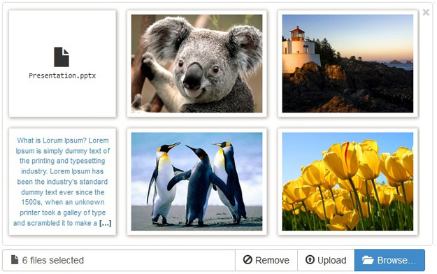 Bootstrap3.x 的一個(gè)增強(qiáng)版的HTML 5 文件選擇控件,可以對(duì)圖片文件和文本文件進(jìn)行預(yù)覽,以及其他功能。該插件增強(qiáng)了這些插件,并且將組件的初始化簡化為一個(gè)簡單的HTML文件字段。它同時(shí)還提供了多個(gè)文件預(yù)覽的功能包括圖片和文本文件。