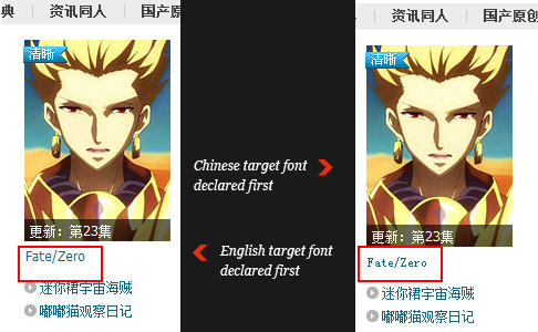 根據(jù)這些規(guī)則,font-family應(yīng)該優(yōu)先指定英文字體,然后再指定中文字體。否則,中文字體所包含的英文字母,會(huì)取代英文字體,這往往很丑陋。