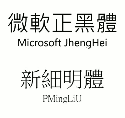- 微軟雅黑:Microsoft YaHei (Windows 7開始提供)