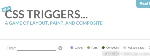 Chrome開發(fā)者Paul Lewis創(chuàng)造了一個頁面解析參考,當(dāng)給定的CSS屬性變更時它會發(fā)揮自己的作用。例如,一些屬性將觸發(fā)重繪和合成,但不會引發(fā)布局。我們可以很容易地通過CSS Triggers來發(fā)現(xiàn)這些變化。