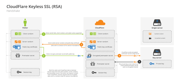 從上面第二點(diǎn)可知,整個對話過程中(握手階段和其后的對話),服務(wù)器的公鑰和私鑰只需要用到一次。這就是CloudFlare能夠提供Keyless服務(wù)的根本原因。
