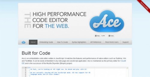ACE 是用JavaScript編寫的一個可嵌入的代碼編輯器。它能與許多本地編輯器匹配,如Sublime,Vim和TextMate等。ACE被作為Cloud9 ID的主編輯器維護,也是Mozilla Skywriter項目的繼承。