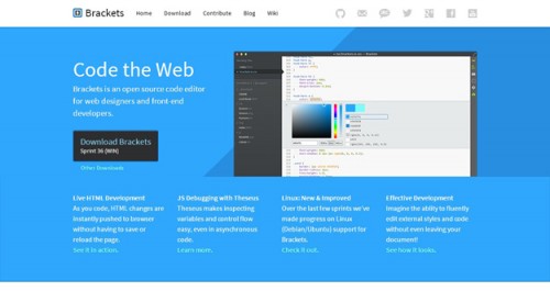 Brackets 是一個免費、開源且跨平臺的 HTML/CSS/JavaScript 前端 WEB 集成開發(fā)環(huán)境 (IDE工具)。該項目由 Adobe 創(chuàng)建和維護,根據(jù)MIT許可證發(fā)布,支持 Windows、Linux 以及 OS X 平臺。Brackets 的特點是簡約、優(yōu)雅、快捷,它的核心目標是減少在開發(fā)過程中那些效率低下的重復性工作,例如瀏覽器刷新,修改元素的樣式,搜索功能等等。