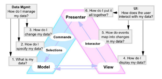 Model-View-Presenter是在MVC的基礎(chǔ)上,進(jìn)一步規(guī)定了Controller中的一些概念而成的: