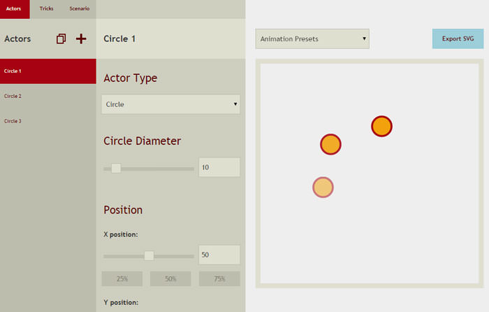如果你認(rèn)為加載動(dòng)畫很酷,那么現(xiàn)在你可以通過(guò) SVG Circus 來(lái)簡(jiǎn)單地處理 SVG。這個(gè)工具可以讓你制作自己的加載器,旋轉(zhuǎn)器,或者任何類似的循環(huán)動(dòng)畫。設(shè)置‘角色’,位置,尺寸,顏色和其他形式的面板,之后輸出就可以得到結(jié)果。