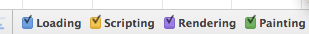 Timeline面板提供兩種查看方式:橫條的是”事件模式”(Event Mode),顯示重新渲染的各種事件所耗費(fèi)的時(shí)間;豎條的是”幀模式”(Frame Mode),顯示每一幀的時(shí)間耗費(fèi)在哪里。