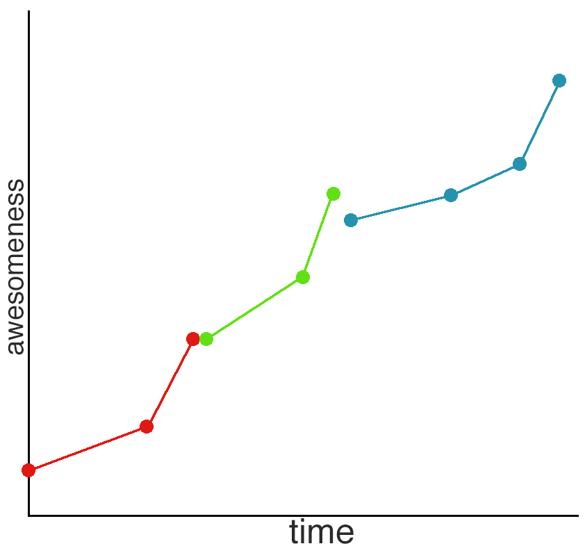 偉大的職業(yè)生涯看起來更像是這樣的。在某段時間內(nèi)增速放緩,然后挨過了“瓶頸點”之后會有急劇上升。